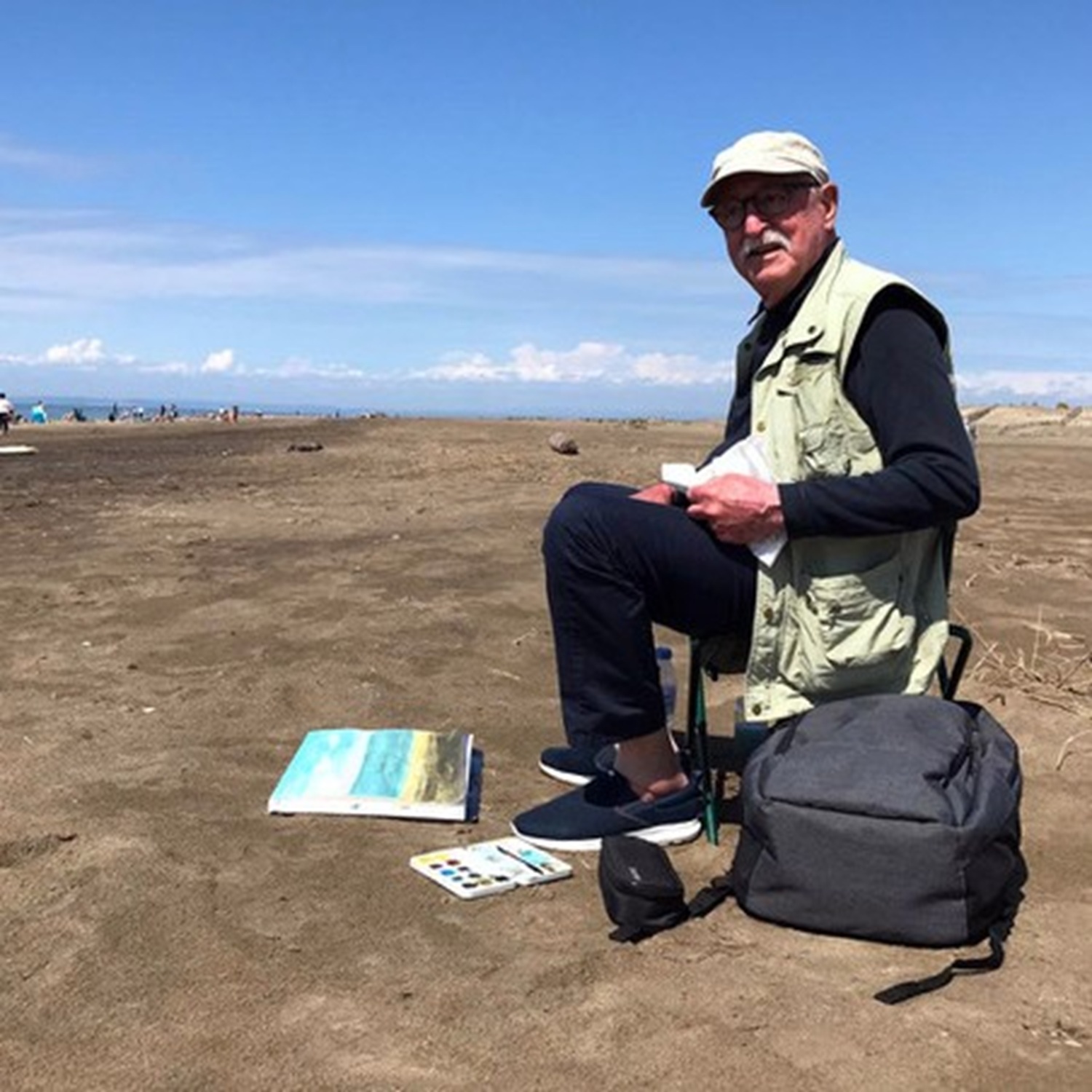 Dieter Notz, bildender Künstler, Maltherapeut, Grafiker und VGZ-Mitglied begleitet die Teilnehmenden, gibt Impulse und unterstützt bei Fragen.