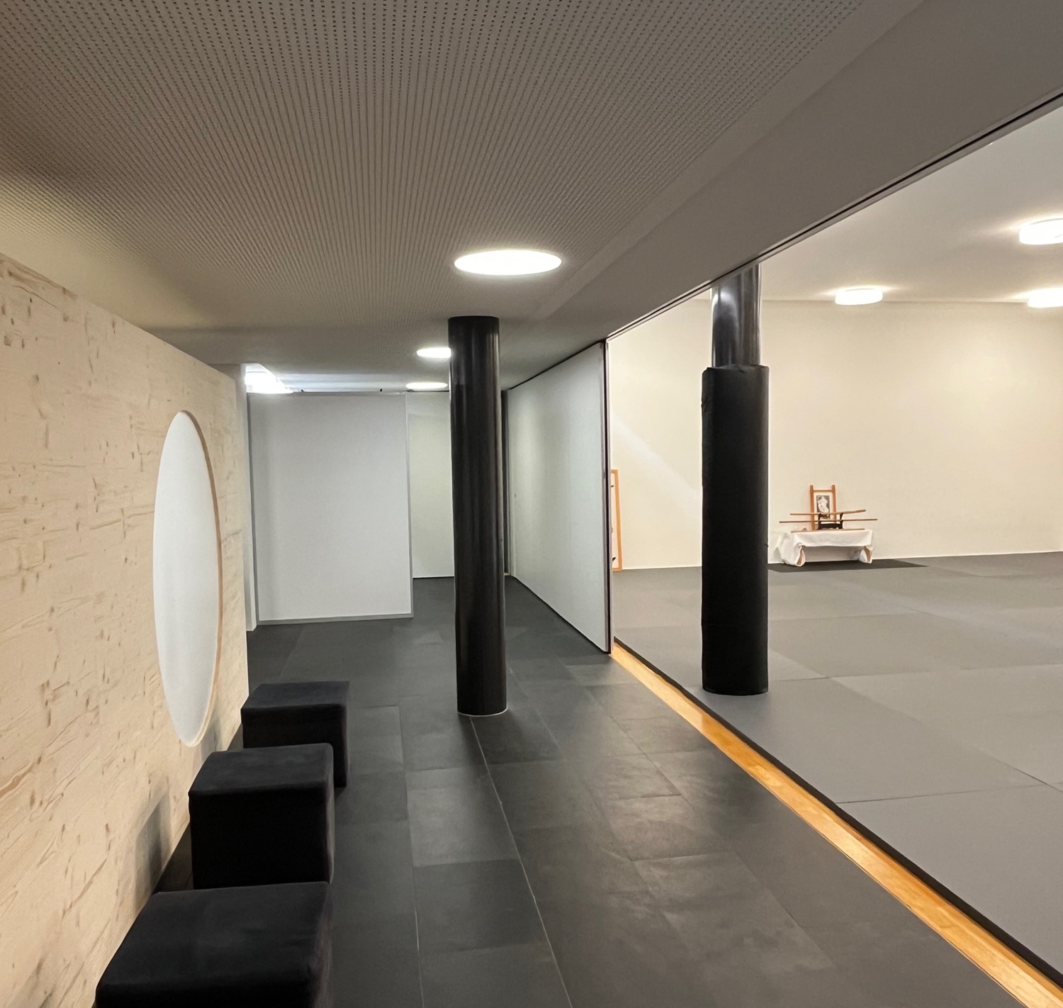 Mit frisch eingebauten Garderoben und Duschen sowie einem durchegenden Budo-Mattenboden im Trainingsbereich ist er zu einem wunderbaren Bewegungsraum geworden - und dient dem Aikido-Verein als Trainings-Homebase. Er darf mit Socken oder barfuss betreten werden - perfekt für alle, die sich frei und leicht bewegen möchten.