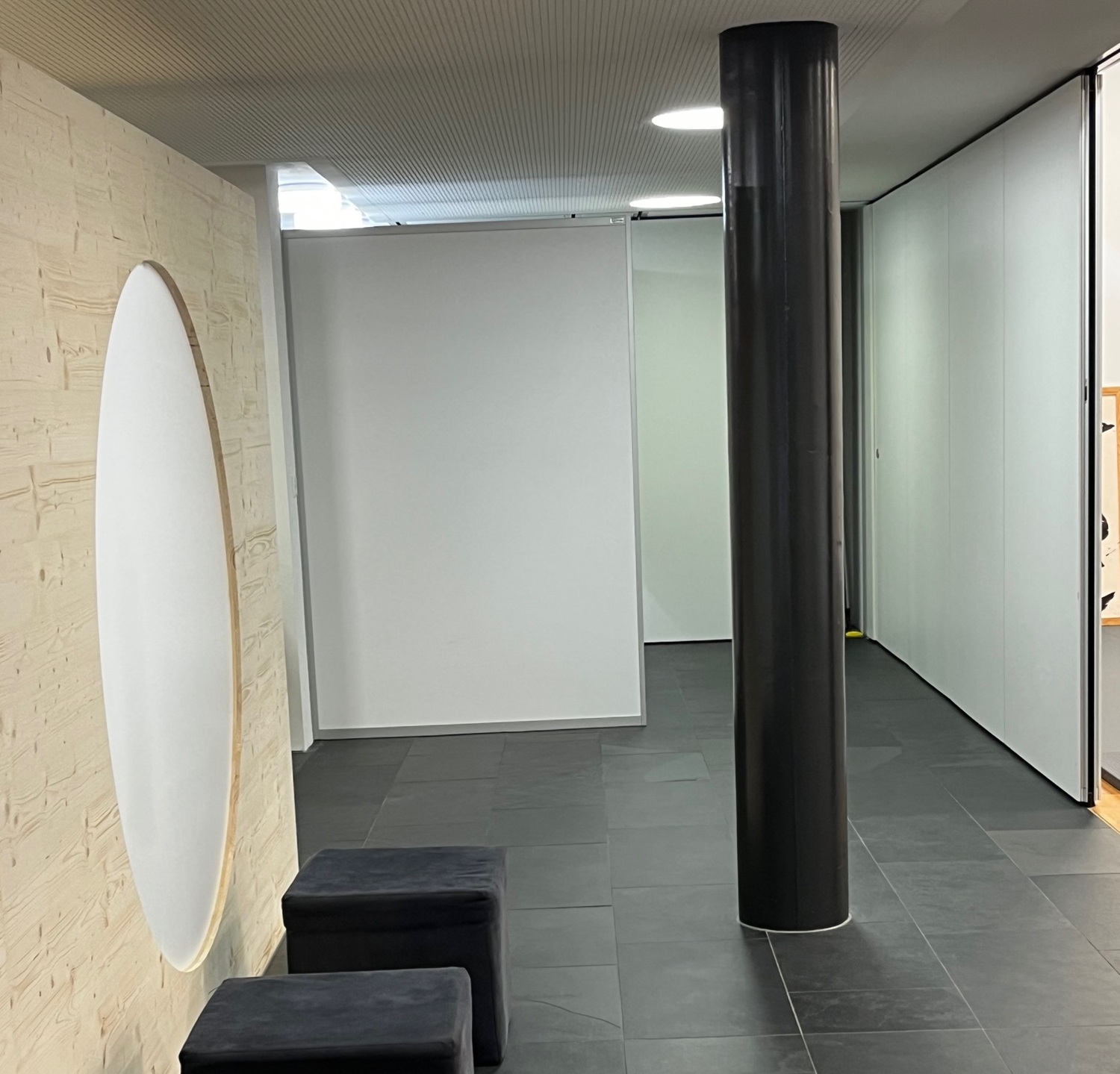 Er befindet sich im Neubau auf dem Areal der Stadtoase auf Ebene Tobelhofstrasse und ist somit durchgängig barrierenfrei zugänglich. Grosse Oblichter und einer Fensterfront im Eingangsbereich tauchen den Raum in sanftes Tageslicht und schaffen eine angenehme, konzentrierte Atmosphare.